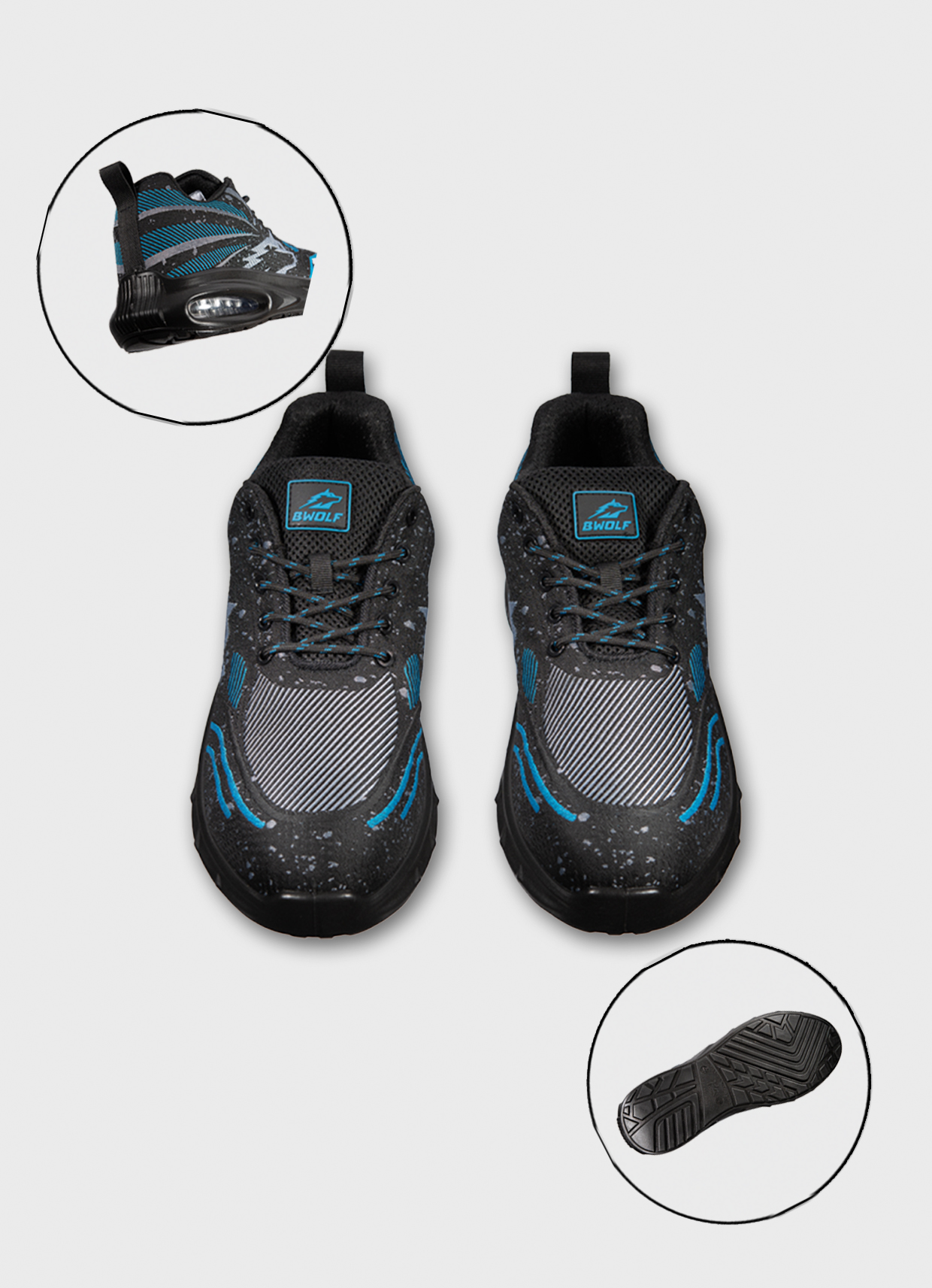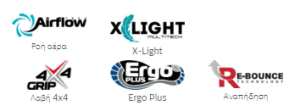 - PU διπλής πυκνότητας, ανθεκτικό στο λάδι, αντιολισθητικό με σύστημα GRIP 4×4, απορρόφηση ενέργειας με RE-BOUNC.